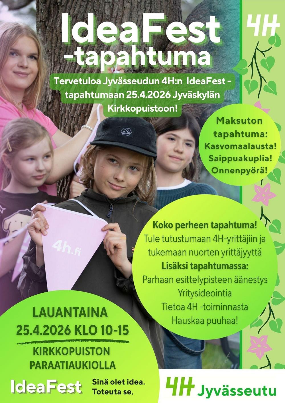 Jyvässeudun 4H tarjoaa lapsille ja nuorille laadukkaita 4H-kerhoja ja leirejä, nuorten klubitoimintaa, työelämäkoulutuksia sekä monipuolisia työllistymismahdollisuuksia Jyvässeudulla. Työllistämme vuosittain yli 200 nuorta keikkatyön, 4H-yrittäjyyden, kerhon- ja leirinohjauksen sekä kesätyöllistämisen merkeissä. Yhdistyksemme on myös aktiivinen hanketoimija. Hankkeiden avulla kehitämme yhdistyksemme toimintaa ja toteutamme nuorisovaihtoja.