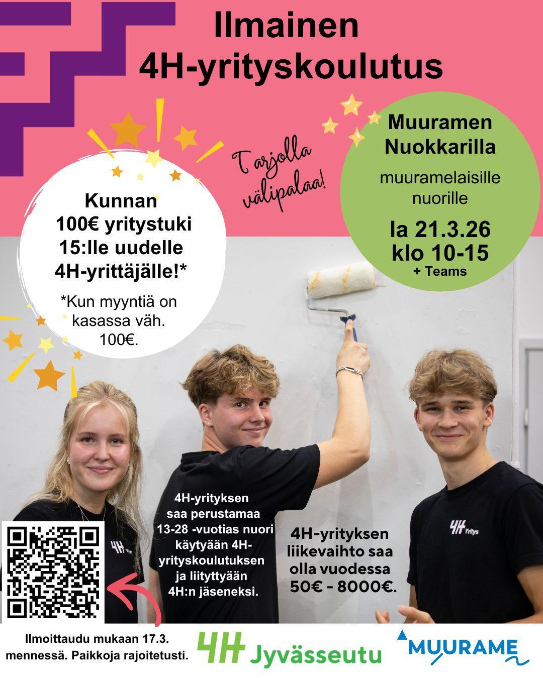Seuraava live 4H-yrityskoulutus Muuramen nuokkarilla muuramelaisille nuorille lauantaina 21.3. klo 10-15.
